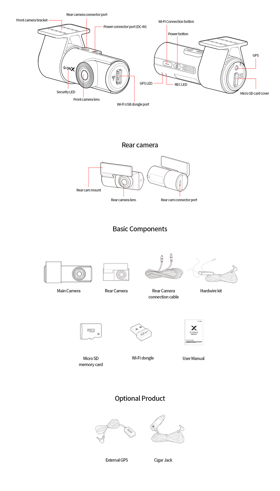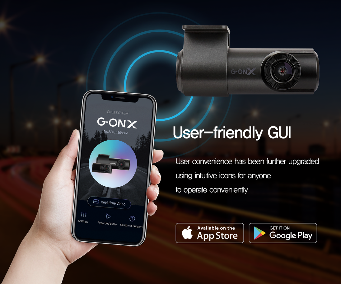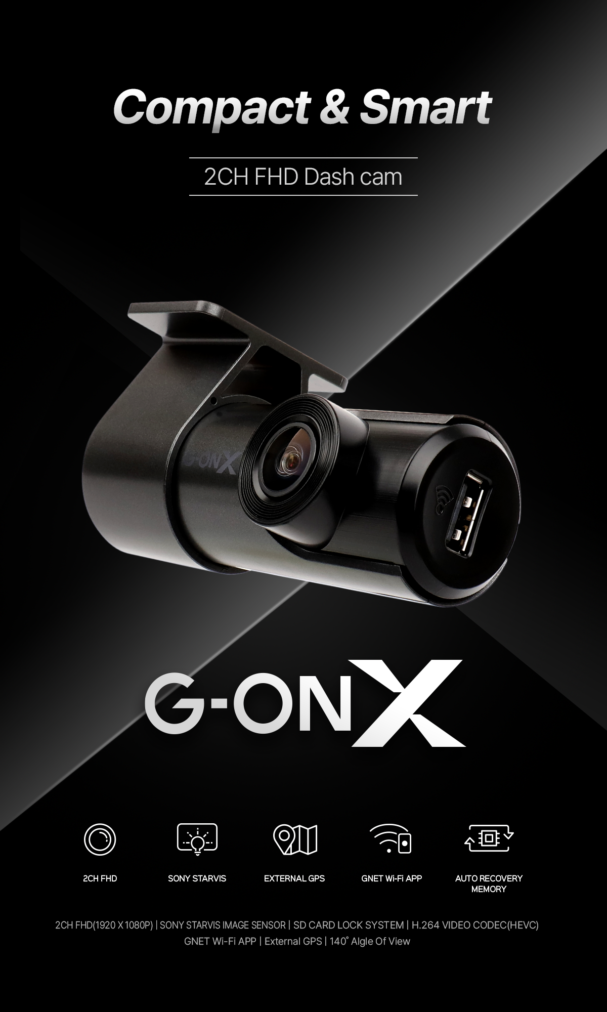 Connectivity: GNET Wi-Fi App GPS: External GPS The G-ONX is not just a dash camera; it's a part of your connected driving experience. With the GNET Wi-Fi App, you can easily access your recordings and control your dash camera from your smartphone. Need to check a specific moment or share an exciting event? It's as simple as a few taps on your phone. Additionally, the external GPS feature provides accurate location data, enhancing your overall driving experience.