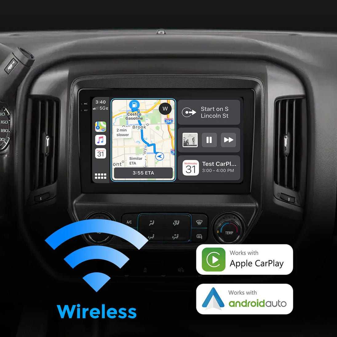 Wireless CarPlay & Android Auto for seamless hands-free connectivity.