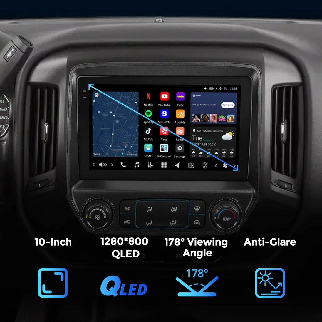 10" Custom-Fit Car Stereo for Chevrolet Silverado/Sierra 2014-2019