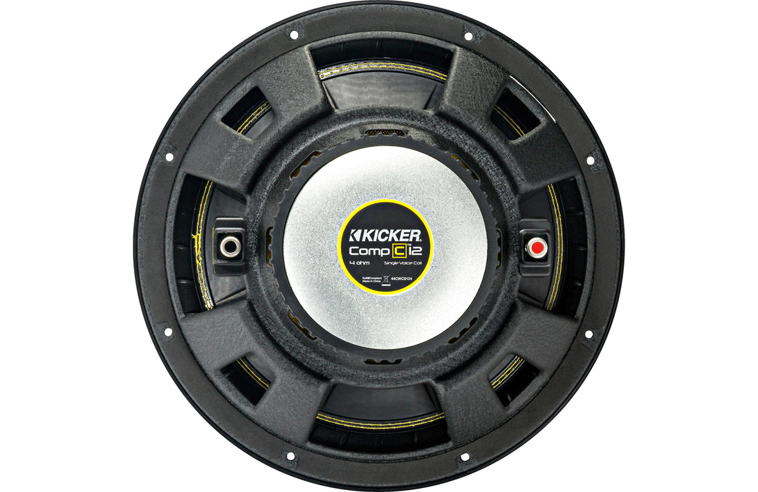 En ce qui concerne la basse, Kicker a écrit le livre, car ils ont été parmi les premiers à créer des subs et des amplis pour voitures. La gamme Kicker CompC trouve ses racines dans la gamme originale de subwoofers Kicker Comp qui remonte à 1986, vous faisant bénéficier de leurs décennies d'expérience. Le caisson de basses CompC Series 44CWCS124 de 12" est doté d'un cône en polypropylène résistant à la flexion pour des graves percutants sans distorsion, tandis que le contour en mousse nervurée avec ses coutures jaunes familières favorise les longues excursions et aide à maintenir le cône sur la cible.
