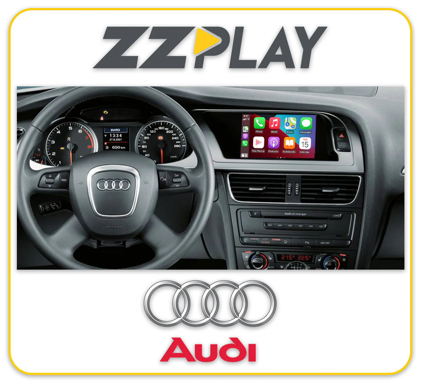ZZPLAY, our CarPlay and Android Auto solution, converts your factory system into a smart device, allowing you to use the most popular apps from your smartphone (such as iMessage, Spotify, Waze, WhatsApp, Google Maps and more) with your factory controls. In addition to that it allows you to mirror your Smartphone, add Front and Rear Camera (with Dynamic Parking Lines) and USB A/V playback.