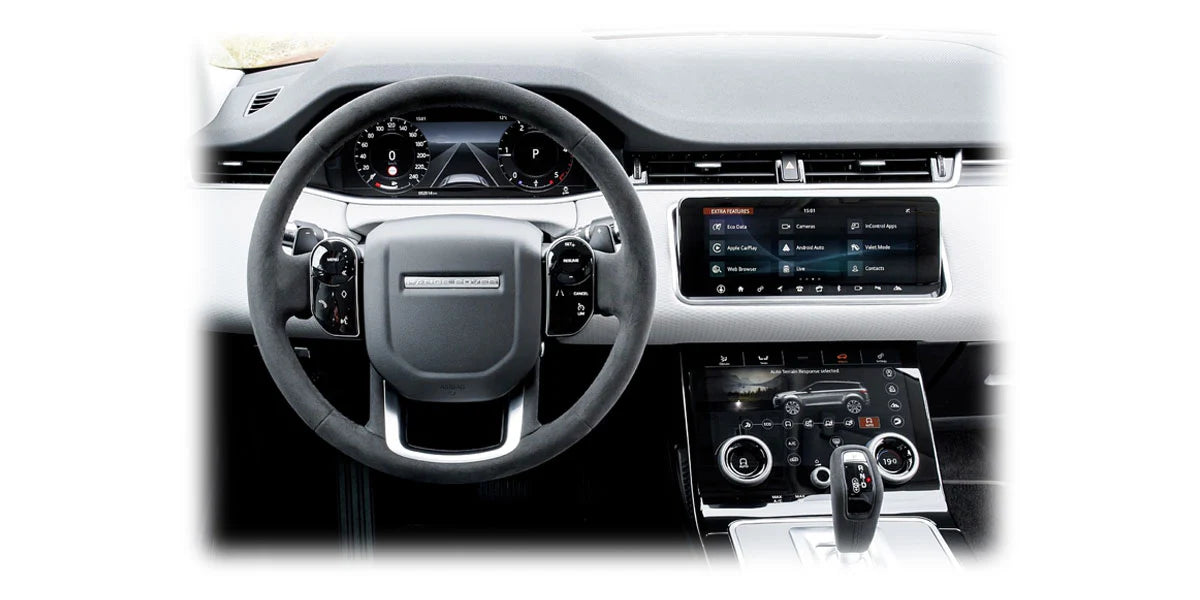 Wireless CarPlay/Android Auto, Camera and A/V interface compatible with 2018 and up Range Rover vehicles equipped with the DUO systems.