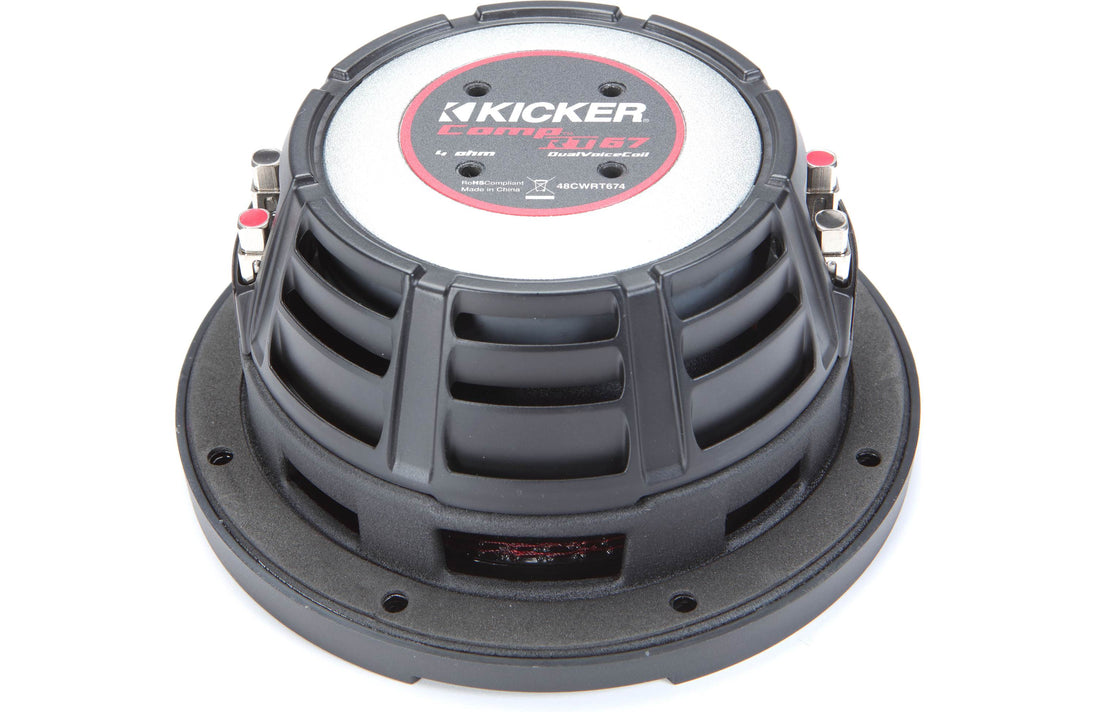Si vous recherchez des basses pour un espace restreint, Kicker a conçu ses subs CompRT en pensant aux voitures compactes, aux camionnettes et aux VTT. Le caisson de basses 48CWRT674 6-3/4" à profil bas fonctionne comme un caisson de basses pleine grandeur, mais sans détruire tout votre espace de chargement. Ce sub CompRT haute performance mesure moins de 3" de profondeur, vos options d'installation sont donc grandes ouvertes. Kicker a repensé le système de refroidissement à air pulsé, de sorte que ce sub fonctionnera plus frais lorsque vous le conduirez fort (et vous savez que vous le ferez).